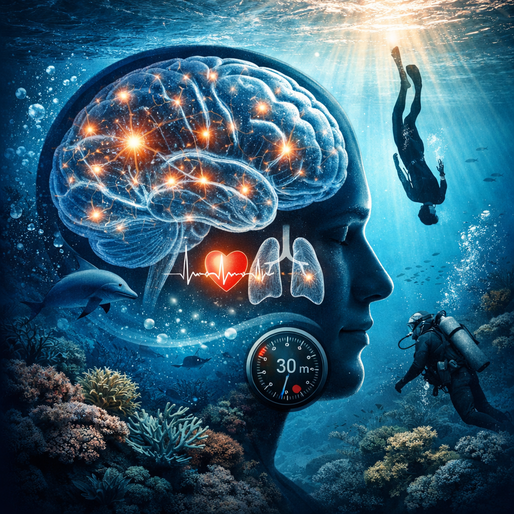 When a human enters the water and begins the descent, the brain is suddenly placed in an environment it was never designed for. Pressure, silence, changing light, and an altered perception of time force the nervous system to adapt rapidly. And it is precisely within this adaptation that something extraordinary happens.