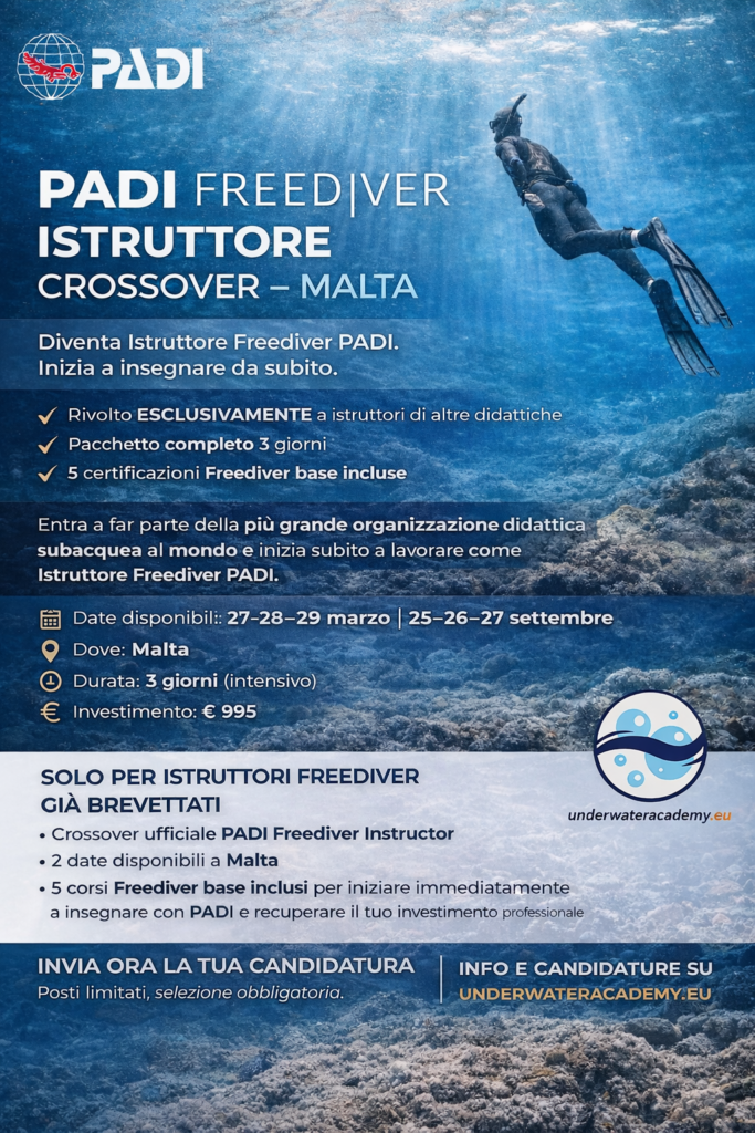- Diventa Istruttore PADI Freediver: Prossima Edizione a Malta – 23/24/25/26 Ottobre